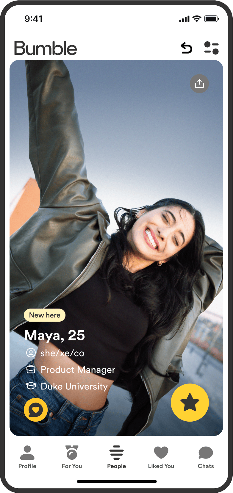 Vårt huvudmål: att du ska trivas på Bumble medan du knyter kontakter.