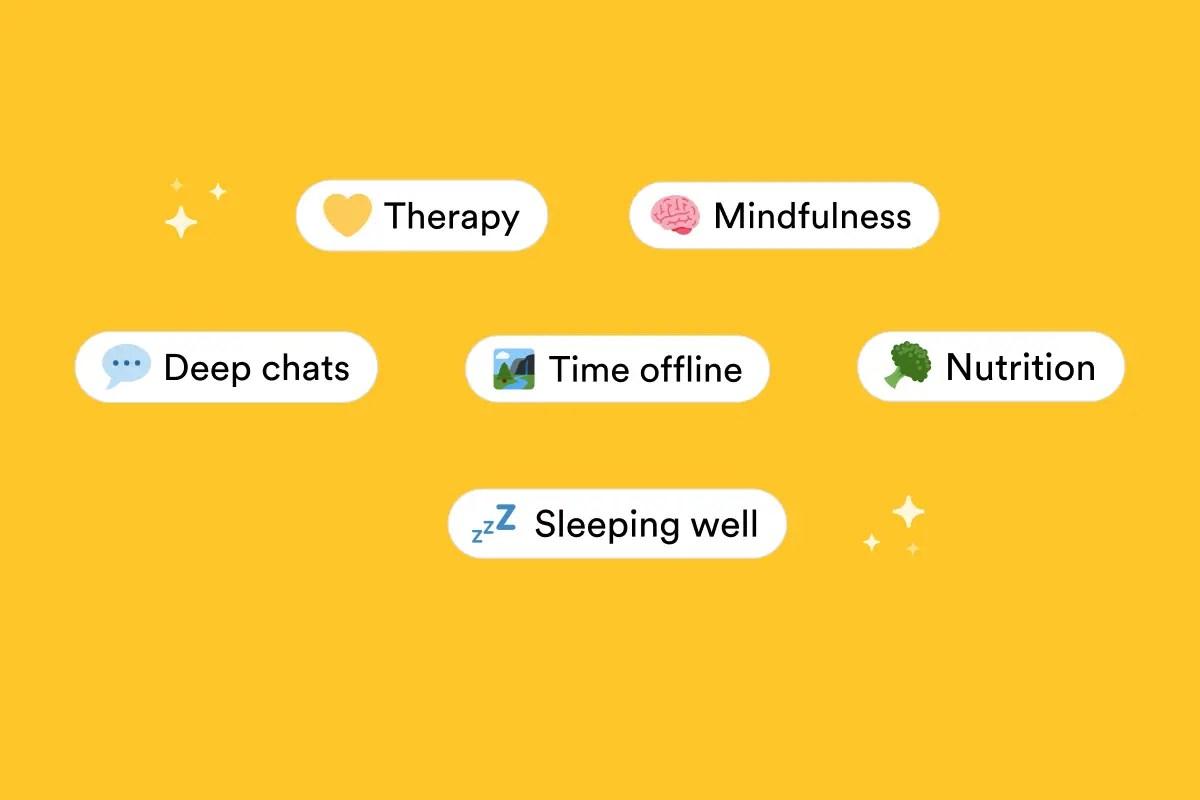 To support our community’s desire to openly talk about their mental health we’re introducing new Profile Prompts and Interest Badges related to self-care. In Date Mode, you can now select from two new Profile Prompts: “My mental health game changer was…” and “I’m prioritizing my mental health by…” There are six new Interest Badges: Therapy; Mindfulness; Deep chats; Nutrition; Sleeping well; and Time offline. These Prompts and Badges will be available to add to your Bumble profile indefinitely—so you can change them whenever you’d like. (As a reminder, there’s always Snooze mode on Bumble if you feel you need to prioritize yourself and take a break from dating.)