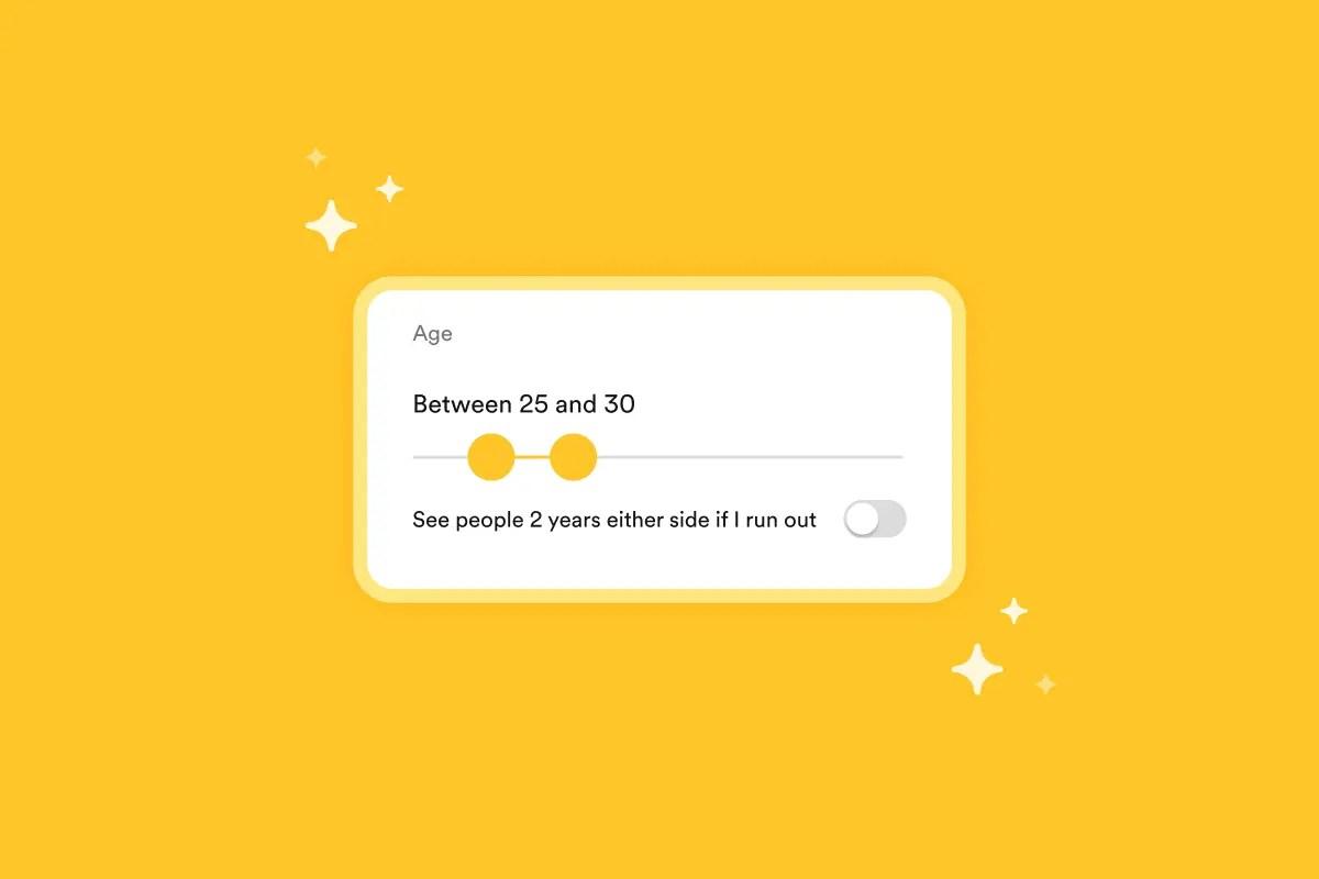 You can also give yourself some wiggle room on the age, distance, and language filters. Just tap the toggle button under any of these fields and we’ll expand your preferences slightly if you run out of daters to see within your chosen range. Note: you can only filter by language if you’ve added at least one of your languages to your own profile.